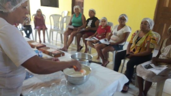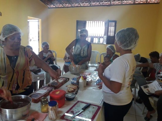 Neste momento acontece a realização do curso de bombons regionais, que tem como público alvo as mães de família do bairro.