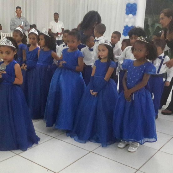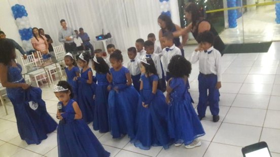 Sob olhares emocionados dos familiares e amigos, alunos da turminha de formandos da pré-escola do Instituo Social Renascer.
