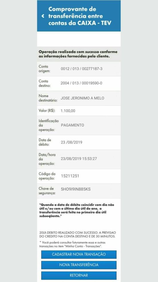 “Isso tudo durou uns 30 min, foi o tempo de esperar o comprovante do depósito (print) e assim que eu recebi, resertei o celular e entreguei com todos os acessórios e ela foi embora”.
