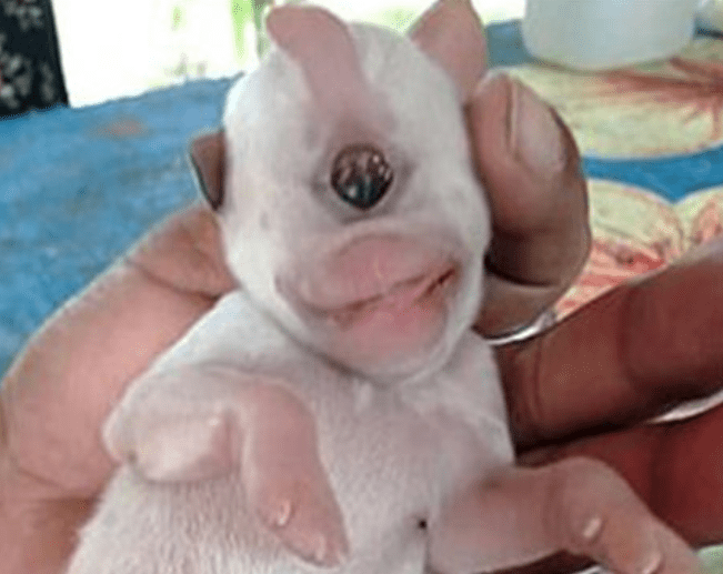Este adorável filhote é um ciclope da vida real depois de nascer com uma mutação genética que o deixou com apenas um olho no meio da testa.