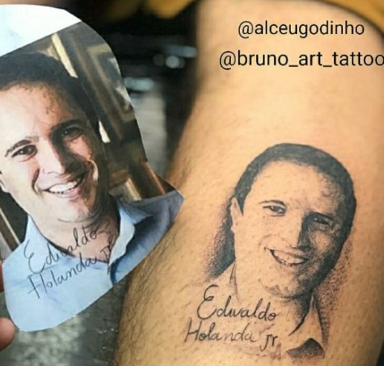 Alceu Godinho decidiu tatuar o rosto do pedetista na panturrilha.