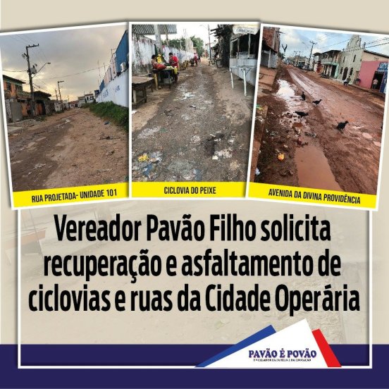 O Vereador Pavão Filho, apresentou e a Câmara Municipal de São Luís aprovou, vários requerimentos e indicações, solicitando recuperação e asfaltamento de alamedas e várias ruas da Cidade Operária.