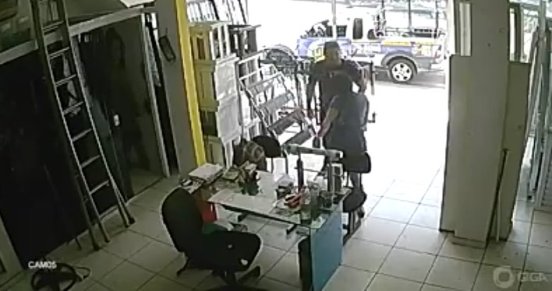 As imagens mostram o momento em que homem parte para cima da esposa e agride com socos, tapas, murros e pontapés depois de ela descobrir, por meio das câmeras, que ele estaria tendo um caso extraconjugal com uma das funcionárias da loja.