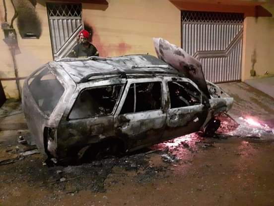 No decorrer do acidente, os bombeiros foram acionados para conter o incêndio no veículo.